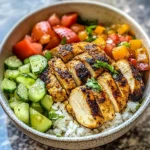 This dish is not only easy to prepare but also ideal for weeknight dinners or meal prep for the week ahead. Imagine biting into juicy chicken paired with crisp cucumbers, ripe tomatoes, and creamy feta cheese, all drizzled with a zesty lemon dressing. Whether you’re hosting friends or enjoying a quiet evening at home, these bowls promise to tantalize your taste buds and nourish your body. Get ready to experience a golden feast that will have everyone coming back for seconds!