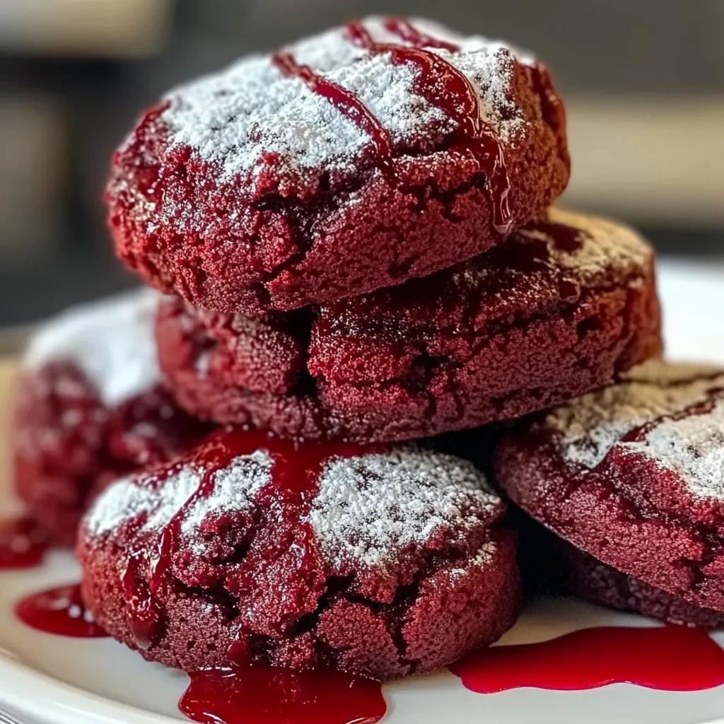 Red Velvet Crinkle Cookies: Luscious in 30 Minutes stand out due to their vibrant color and distinctive flavor profile. The combination of cocoa powder with red food coloring gives these cookies their signature look. Additionally, the crinkly appearance results from rolling the dough in powdered sugar before baking, creating a beautiful contrast against the deep red hue.